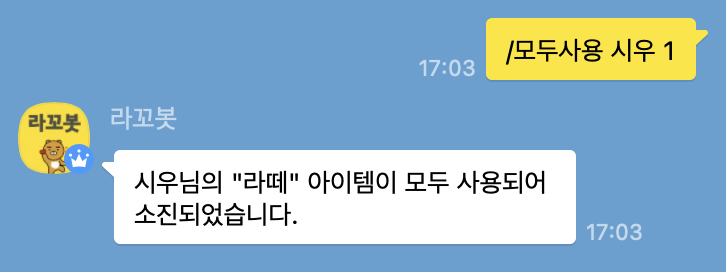 /모두사용 : 멤버 가방 속 특정 아이템을 소진 (관리자)